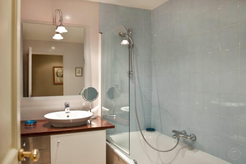 The living area is very comfortable and welcoming and you will feel instantly at home thanks to the lovely decorations. It features a comfortable sofa, which converts into a double bed, two armchairs, a hifi system, a flat screen TV with cable and DVD and plenty of books so you can take a break between two shopping sprees. There is also a large wooden table, which can easily seat six people. The separate contemporary kitchen is fully equipped for all your needs, whether you want to try out some elaborate french cuisine recipe, or just heat up some take away food. A dishwasher, a washing machine, a dryer and an iron and board are also available. The separate bedroom has a double bed, a wooden floor and a wardrobe. The bathroom has a regular bath with a shower, a washbasin and toilet. For your convenience there is also a high speed Internet connection, airconditioning and an elevator, to take you up to this typical Parisian apartment on the fourth floor. Just a short walk away you will find plenty of shops, cafés and restaurants, as well as the metro lines 4 and 10 from which you can travel all over Paris. This cosy apartment is the perfect place for you and your family or friends to have a wonderful stay right in the center of Paris.